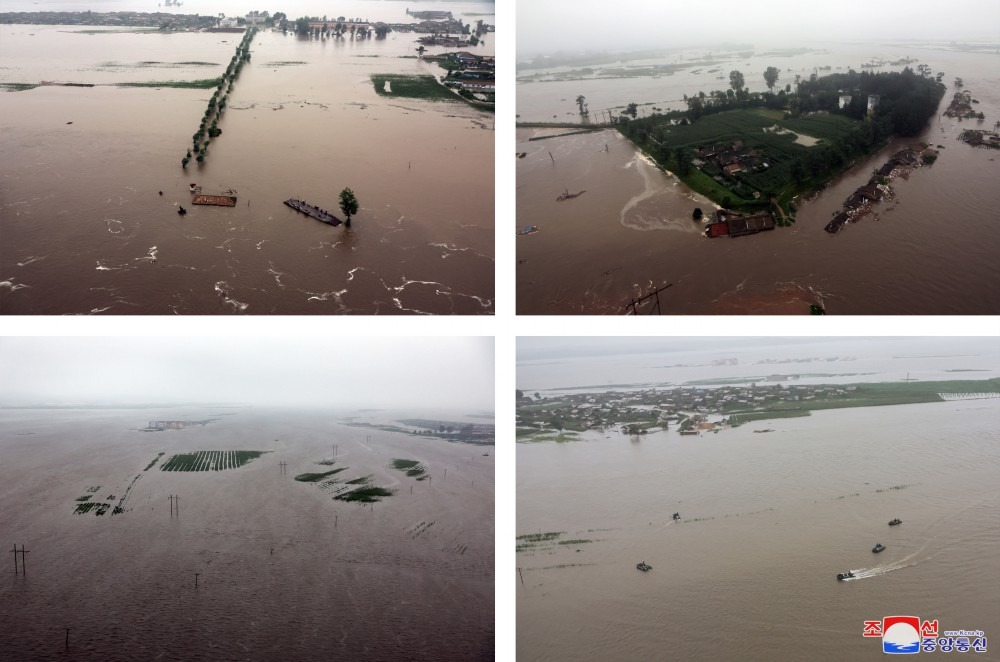 No dia 27, foram registradas grandes precipitações na zona fronteiriça setentrional do país e na outra da parte chinesa, com o que a enchente do Rio Amnok alcançou níveis muito perigosos e se criou a situação crítica de que mais de 5.000 habitantes das ilhas da cidade de Sinuiju e do condado de Uiju ficaram isolados em suas respectivas zonas em perigo de serem inundadas.