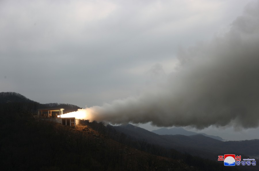 Pyongyang, 20 de março (ACNC) — No momento em que múltiplos sucessos técnico-científicos surpreendentes ocorrem no caminho do aumento constante do potencial de defesa nacional, realizou-se com sucesso o teste estático de reação do motor de combustível sólido para o novo tipo de míssil hipersônico de alcance intermediário, que tem outra importância estratégica.