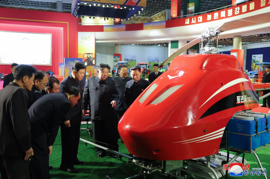 Passando em revista das máquinas expostas, o estimado camarada Kim Jong Un investigou detalhadamente o funcionamento e as características técnicas.