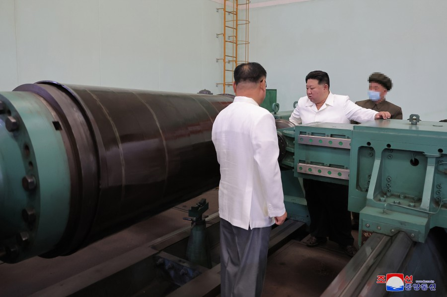 Na primeira planta, o Secretário-Geral verificou em detalhes o estado de produção de mísseis e o reforço da capacidade produtiva e modernização.