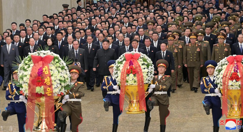 No salão da eternidade, onde está conservado o corpo do Dirigente Kim Jong Il, o estimado camarada Kim Jong Un fez votos pela eternidade do líder antecessor que, sob a bandeira vermelha do Juche, coroou a longa história de sua direção sobre a revolução com a heroica luta e proezas históricas para a humanidade, e consolidou o alicerce de dignidade e prosperidade que permite ao nosso Partido e Estado sair sempre vitoriosos.