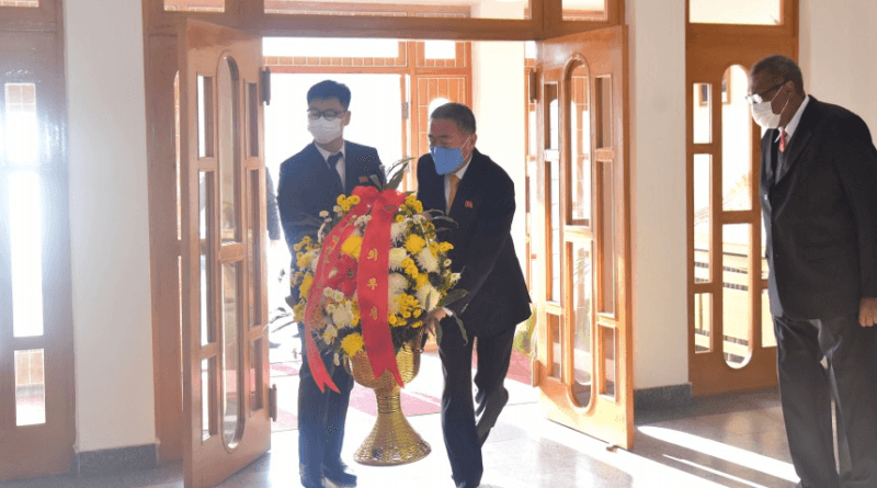 Read MoreEm razão do 64º aniversário do triunfo da revolução cubana, funcionários coreanos visitaram a embaixada e dedicaram cestos de flores