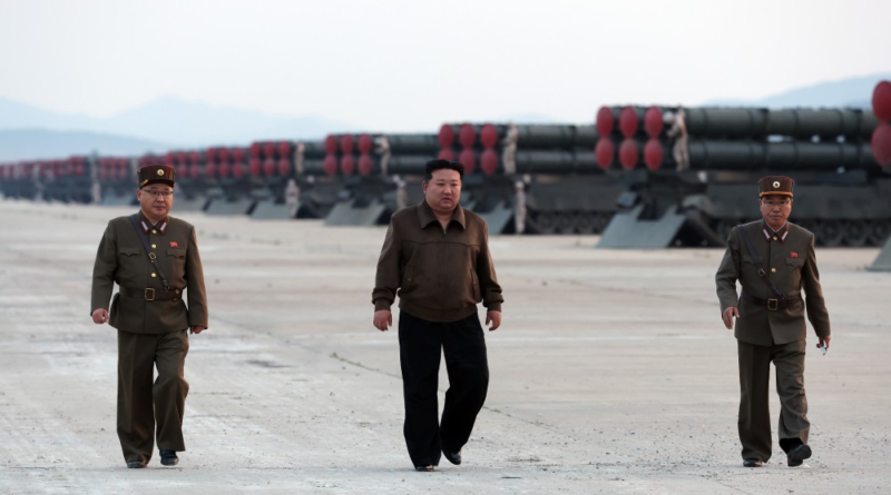 𝐊𝐢𝐦 𝐉𝐨𝐧𝐠 𝐔𝐧 dirige disparos das subunidades de lançafoguetes reativos autopropulsados supergrandes