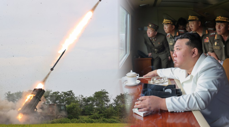 𝐊𝐢𝐦 𝐉𝐨𝐧𝐠 𝐔𝐧 assiste a teste de sistema de lançafoguetes de calibre 240㎜