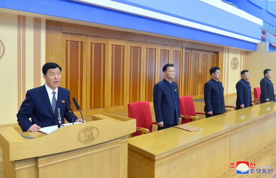 O discurso da ocasião foi proferido pelo vice-presidente do Comitê Central da Federação Geral dos Sindicatos da Coreia, Choe Song Nam.