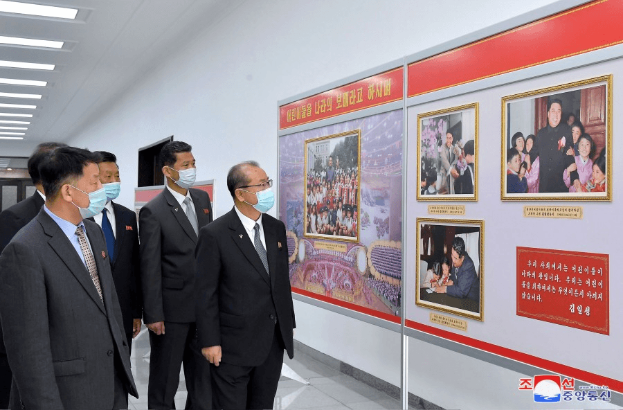 Várias fotos testemunham as benevolências do pai da nação que deu início ao movimento juvenil jucheano e formou as novas gerações como pilares fidedignos do país.