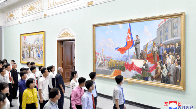 A pintura a óleo “Nascimento”, as de estilo coreano “Nos dias da instituição da bandeira e escudo nacionais da nova Coreia” e “Nos dias da criação da ‘velocidade de Pyongyang’” e outras peças refletem com quadros artísticos as imortais proezas do Presidente que construiu na terra pátria o país do povo mais vantajoso e criou o modelo da época na construção do Estado socialista.