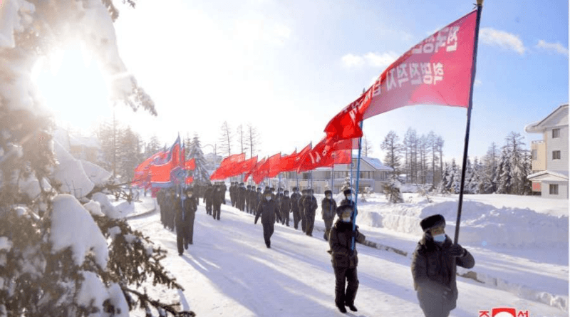 Ato de partida para campos de batalha revolucionária do monte Paektu tem lugar