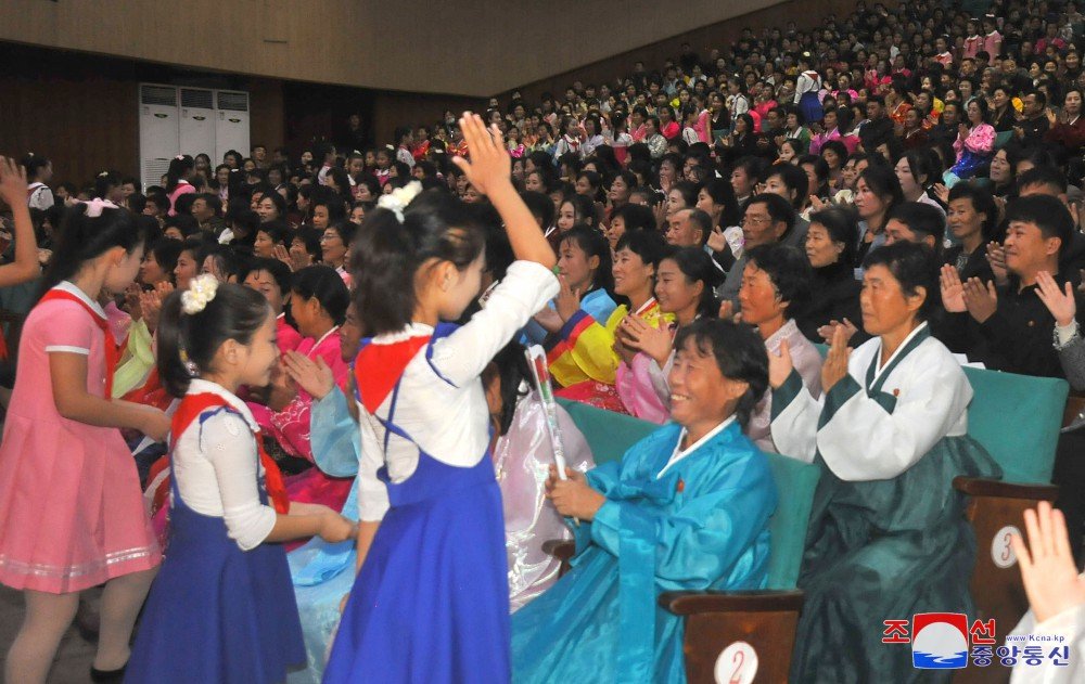 As funcionárias do Comitê Central da União Socialista de Mulheres da Coreia e suas filiais locais visitaram as creches e orfanatos e as famílias de mulheres prolíficas.