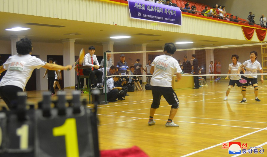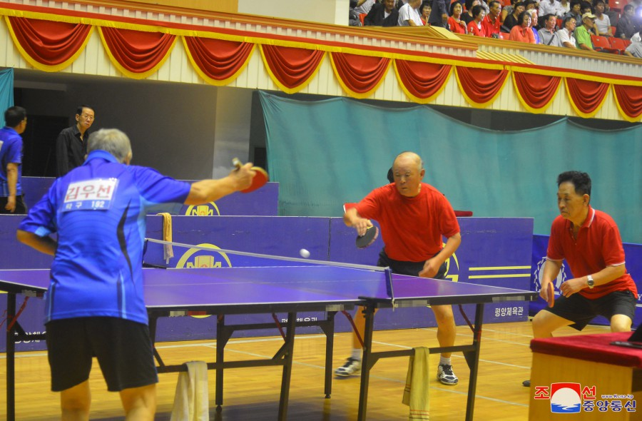 O Palácio de Esportes de Pyongyang foi sede da competição esportiva outonal de idosos.