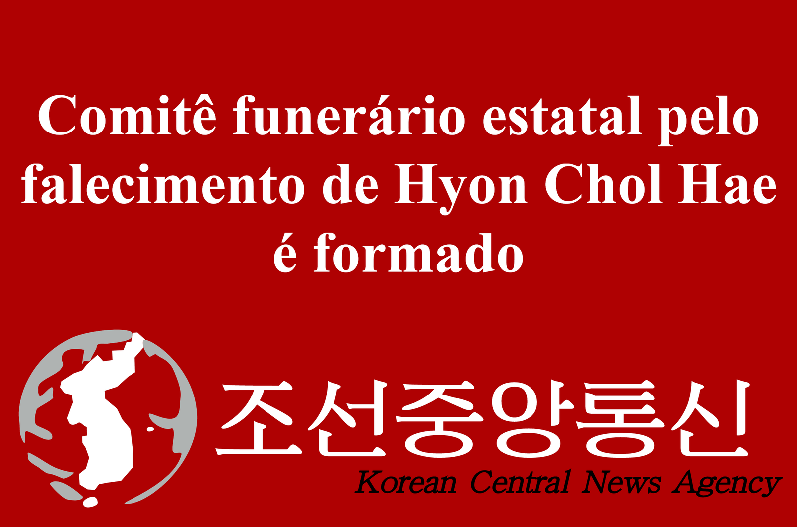 Pyongyang, 20 de maio (ACNC ) — O Comitê Central e a Comissão Militar Central do Partido do Trabalho da Coreia, a Comissão de Assuntos Estatais e o Presidium da Assembleia Popular Suprema da RPDC anunciaram que será realizado com honras do Estado o funeral de Hyon Chol Hae e compuseram o Comitê funerário estatal.
