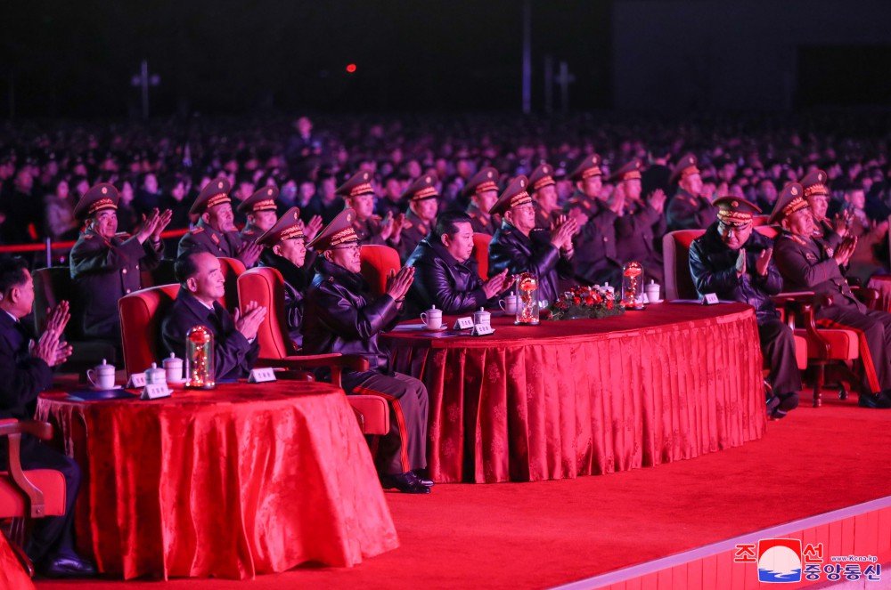 O estimado camarada Kim Jong Un, Secretário Geral do Partido do Trabalho da Coreia e Presidente dos Assuntos Estatais da República Popular Democrática da Coreia, assistiu à gala musical junto com os membros do Presidium do Bureau Político do Comitê Central do PTC e outros integrantes do órgão de direção central do Partido, os comandantes principais de todos os órgãos militares e políticos do Exército Popular da Coreia, os operários, cientistas e funcionários da indústria de defesa nacional, e os participantes da IV Conferência de Chefes e Instrutores Políticos de Batalhão do EPC.