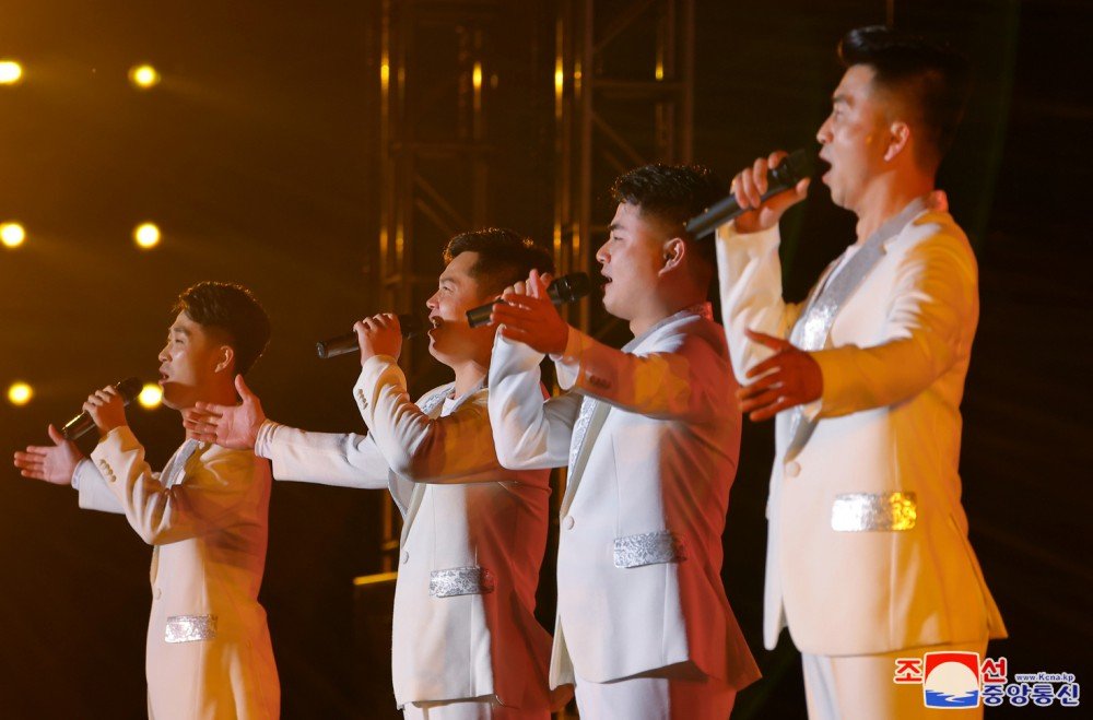 A gala musical terminou com o Hino Nacional da RPDC, após oferecer as odes monumentais que descreveram a inabalável convicção de todo o povo de apoiar eternamente e fielmente nossa pátria socialista, abraço do pai afetuoso que se responsabiliza pelo destino de todos os habitantes e realiza seu anseio secular.