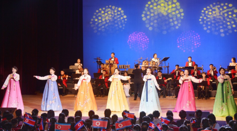 Os artistas levaram à cena as canções e danças revolucionárias que refletem o temperamento indomável do povo coreano em marcha vigorosa para o futuro maravilhoso sob a orientação do Partido do Trabalho da Coreia.