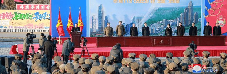 Compareceu à ocasião o estimado camarada Kim Jong Un, Secretário-Geral do Partido do Trabalho da Coreia e Presidente dos Assuntos Estatais da República Popular Democrática da Coreia.