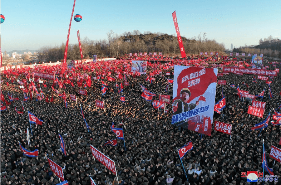Na sede da cerimônia, em que será escrita outra página orgulhosa na história do movimento juvenil jucheano, reinava o afã revolucionário dos jovens construtores por criar novo mito da juventude heroica desempenhando o papel de porta-estandarte pela criação da civilização socialista nesta campanha valiosa para tornar realidade o anseio do Comitê Central do Partido.
