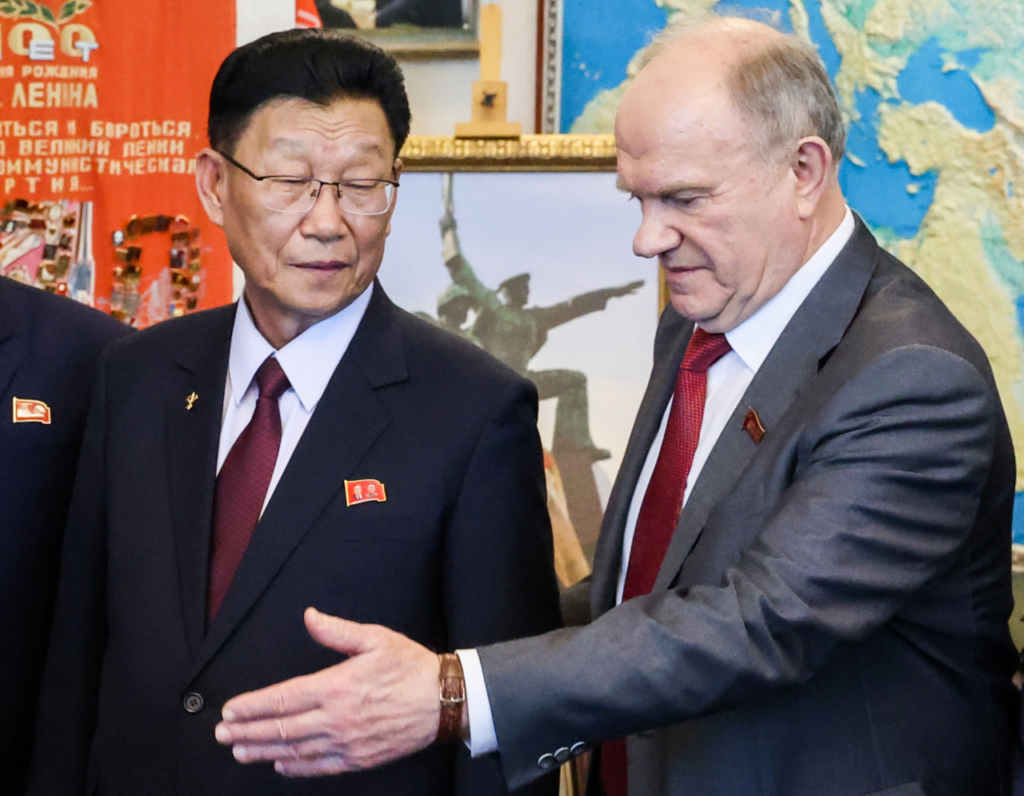Kim transmitiu cortesmente a saudação cordial enviada pelo estimado camarada Kim Jong Un a Gennadi Zhuganov.
