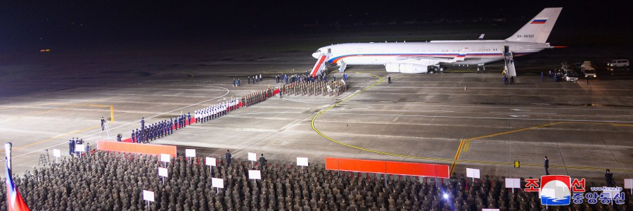 Estava imerso em um clima de cordial boas-vindas o Aeroporto Internacional de Pyongyang onde se acolhe a missão de amizade do exército e povo russos que, conforme o que exige a época, fará contribuição significativa para consolidar e desenvolver em uma nova etapa mais alta as estratégicas e tradicionais relações de amizade Coreia-Rússia, estabelecidas firmemente no caminho da independência anti-imperialista.