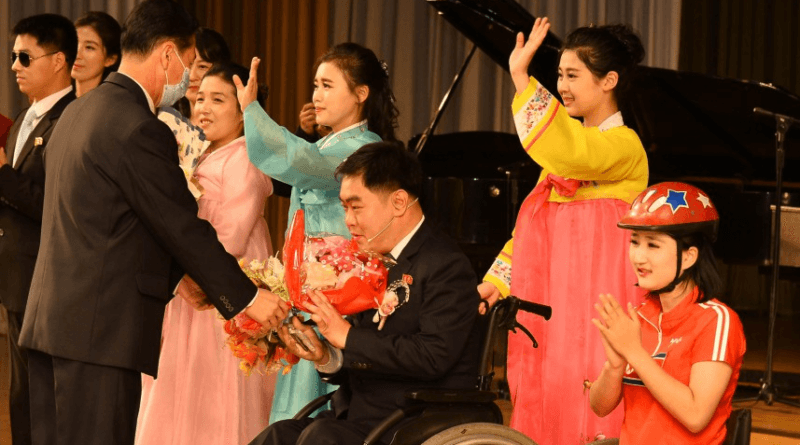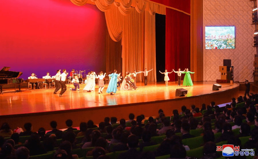O coro “Meu grande país” foi o epílogo do espetáculo que demonstrou bem o aspecto dos deficientes da RPDC que vivem felizes no sistema socialista mais vantajoso do mundo.