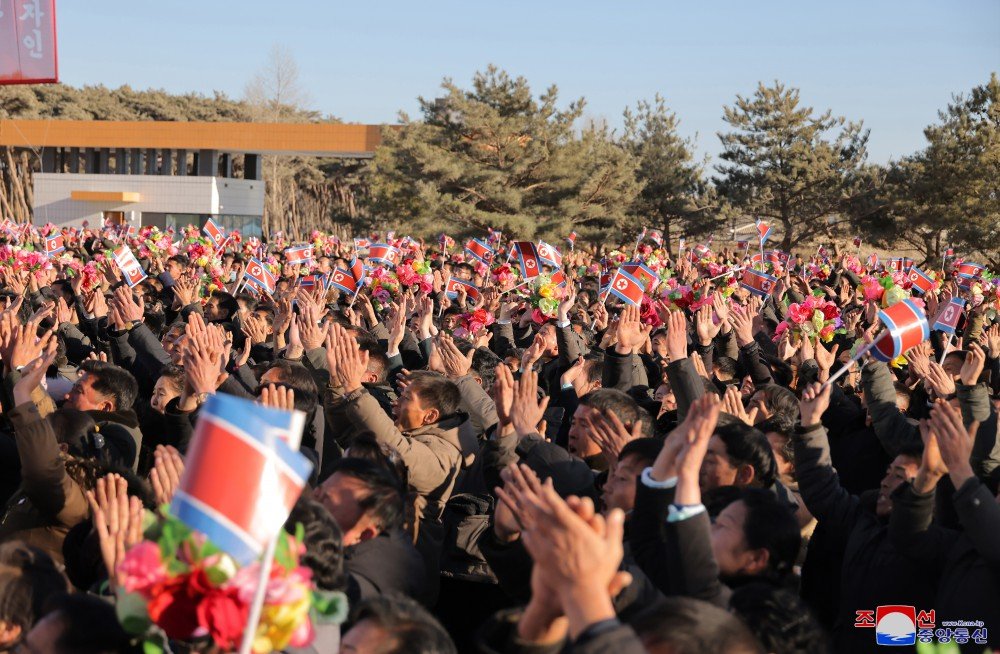 Todos os reunidos prestaram máxima homenagem e agradecimento a Kim Jong Un, que encabeça a grande revolução de desenvolvimento local com a férrea decisão de não poupar nada para o povo.