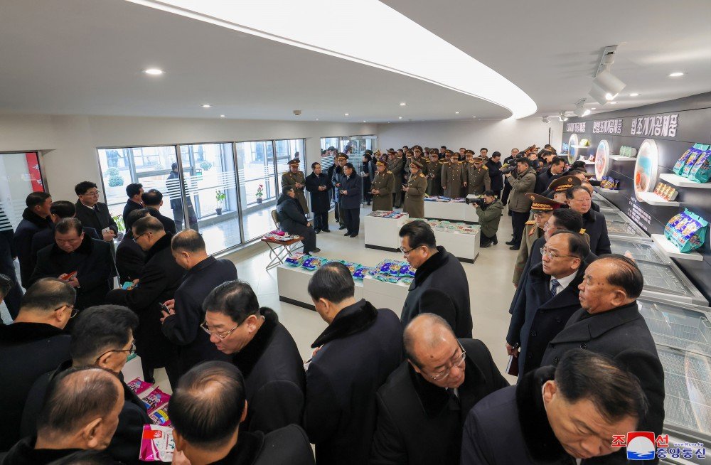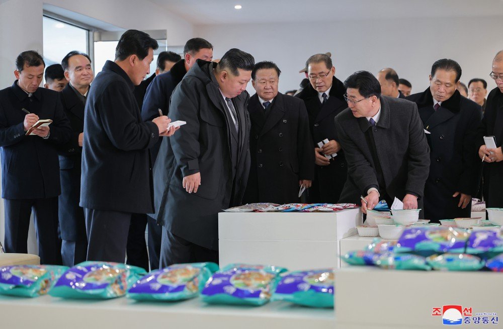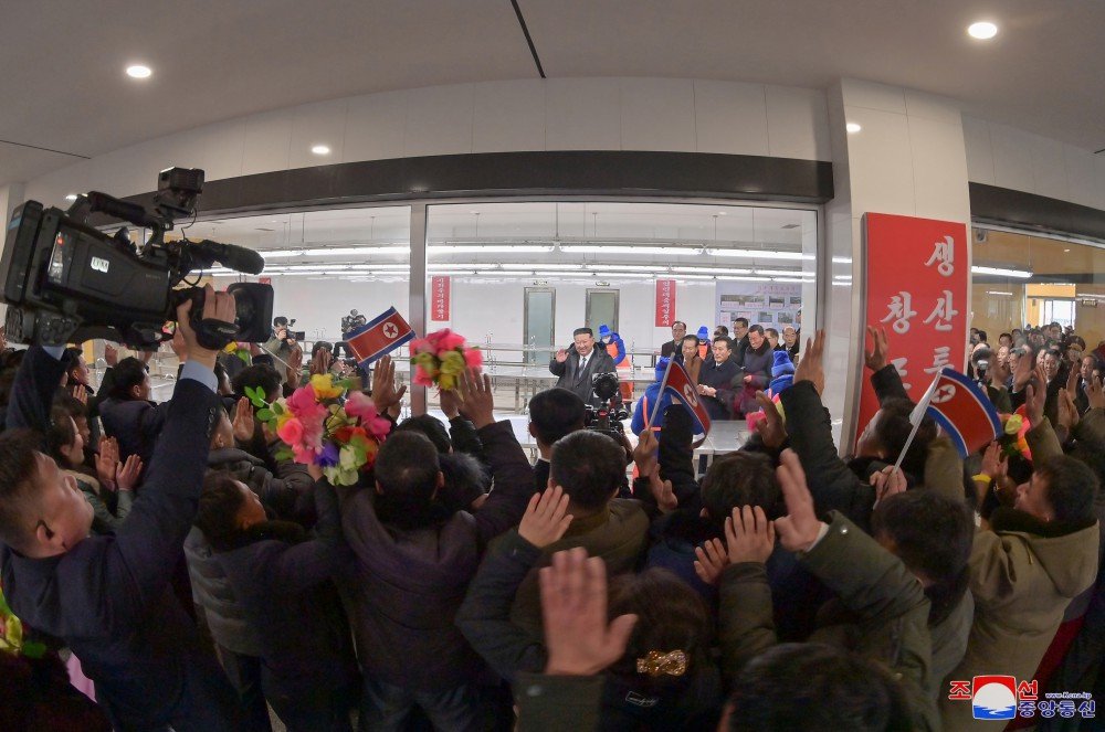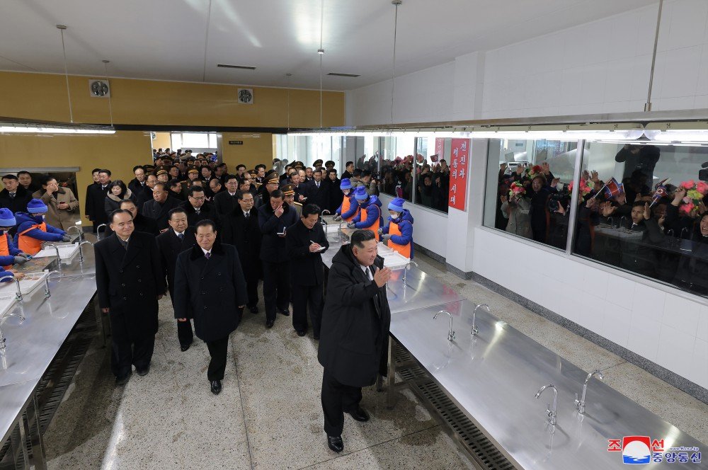 Kim Jong Un percorreu a empresa junto com os participantes.