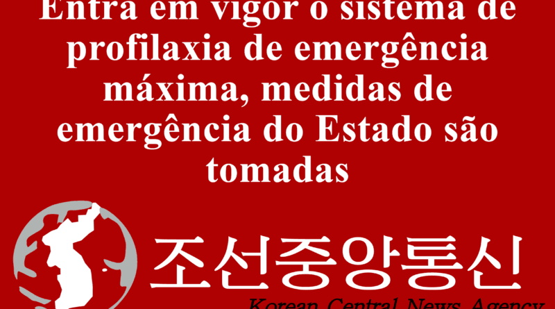 Pyongyang, 13 de maio (ACNC) — O sistema de profilaxia do Estado foi imediatamente alterado para o de profilaxia de emergência máxima de acordo com a resolução da Ⅷ reunião do Bureau Político do Ⅷ Período do Comitê Central do Partido do Trabalho da Coreia.