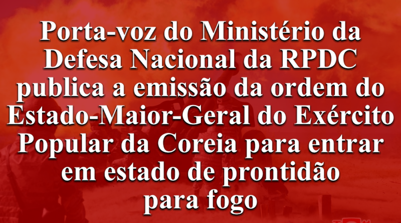 Porta-voz do Ministério da Defesa Nacional da RPDC publica a emissão da ordem do Estado-Maior-Geral do Exército Popular da Coreia para entrar em estado de prontidão para fogo.