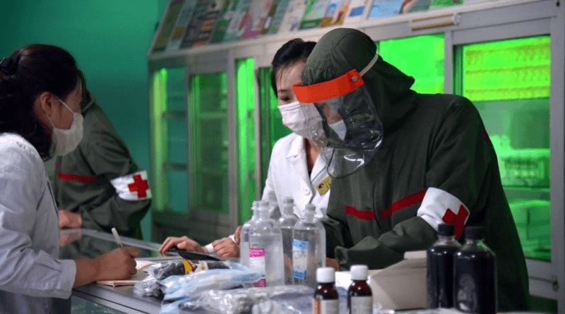 Os efetivos do ramo de medicina militar do Exército Popular da Coreia, implantados em centenas de farmácias da cidade de Pyongyang, desempenham o papel protagonista na batalha profilática da capital trabalhando com abnegação ilimitada como tropa especial do Partido.