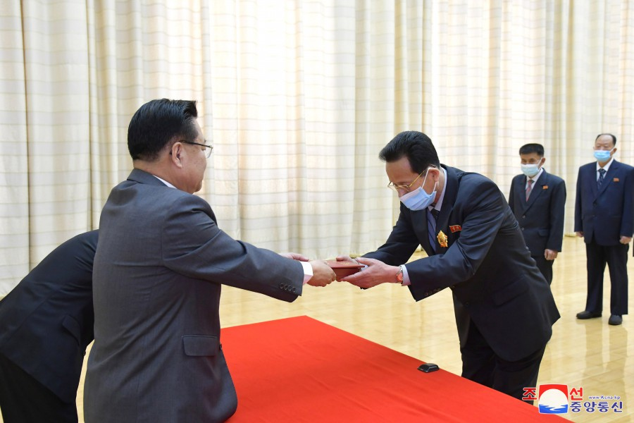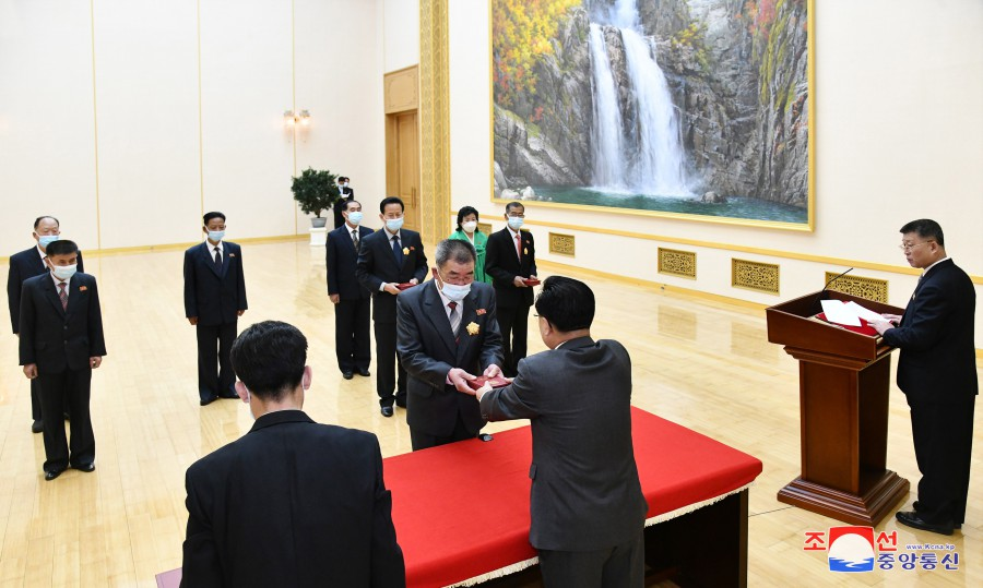 A cerimônia de condecoração teve lugar no dia 12 no Palácio dos Congressos Mansudae.