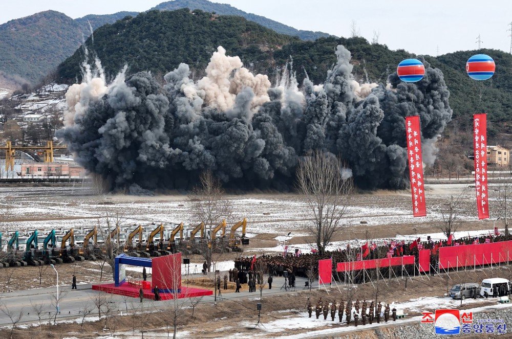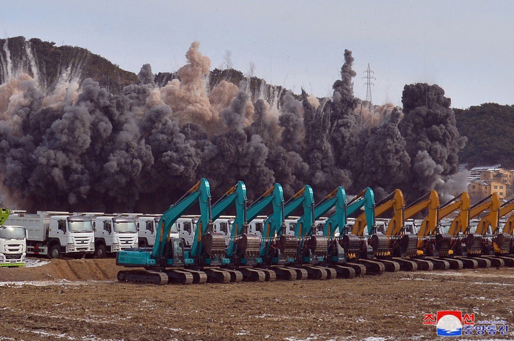 O estimado camarada Kim Jong Un apertou o botão de detonação anunciador do começo da obra.