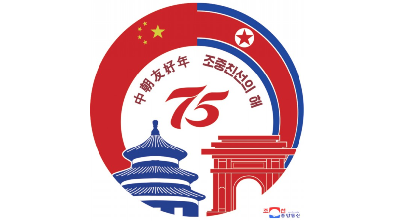 Nele estão desenhados a bandeira nacional de cor azul marinho e vermelho da RPDC e a vermelha de 5 estrelas da RPCh, o número 75 que conta os anos de vínculos diplomáticos e as palavras “Ano de Amizade Coreia-China”, bem como o Arco do Triunfo da Coreia e Tiantan Qiniandian, relíquia de interesse histórico-cultural da China.