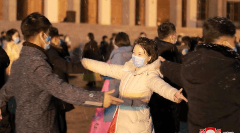 Houve bailes de jovens e estudantes no mesmo local e na esplanada em frente ao Palácio dos Esportes de Pyongyang.