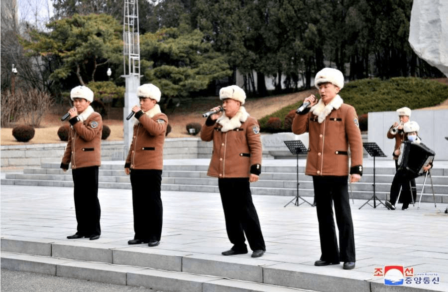 Em sua função oferecida na praça em frente ao Arco do Triunfo, os membros do grupo descreveram de forma impressionante o grande respeito ao Presidente Kim Il Sung e ao Dirigente Kim Jong Il, que, após conceberem o grande projeto de conquista do cosmos, realizaram enormes esforços para colocá-lo em prática.