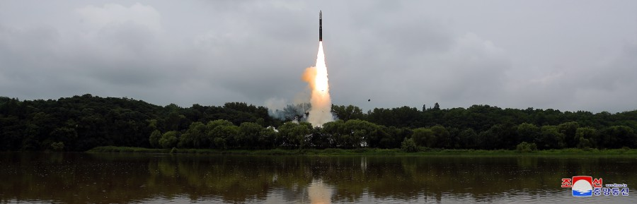 Pyongyang, 13 de julho (ACNC) — Como parte das medidas de autodefesa para salvaguardar a segurança do Estado e a paz da região diante do desastre da guerra nuclear e impedir estritamente os movimentos militares perigosos movimentos das forças hostis, a Direção Geral de Mísseis realizou no dia 12 de julho o lançamento de teste do novo ICBM Hwasongpho-18, sistema de armamento principal das forças armadas estratégicas da República Popular Democrática da Coreia.