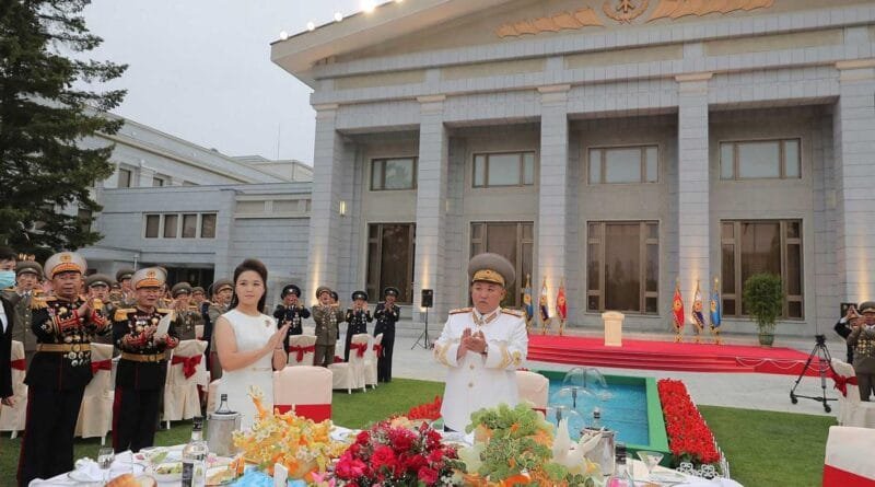 Na presença do estimado camarada Kim Jong Un e de sua esposa Ri Sol Ju, ofereceu-se um banquete opíparo no jardim da sede onde se davam mostras do afeto fraternal entre o líder e seus soldados, estabelecido no trajeto combativo de cumprimento da grande causa pelo país próspero e o exército poderoso.
