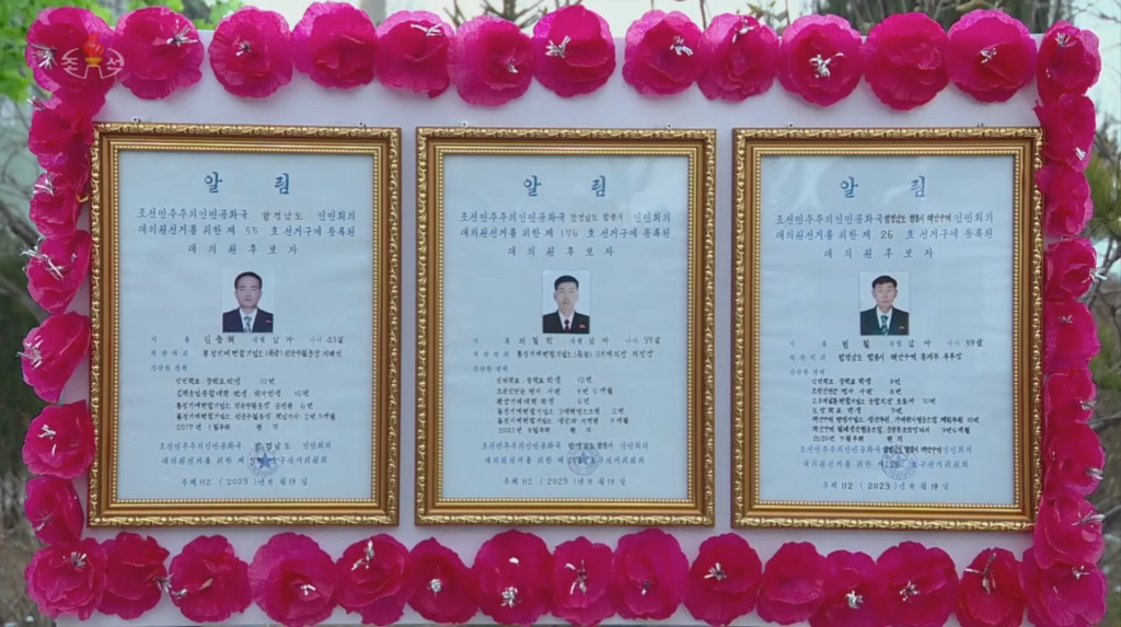 Depois de receber as cĆ©dulas eleitorais entregues pelo presidente do comitĆŖ de circunscrição eleitoral, o SecretĆ”rio-Geral votou no candidato a deputado Ć Assembleia Popular da provĆncia de Hamgyong do Sul, Kim Chung Hyok, gerente da FĆ”brica de Ferro Fundido Songun do Complexo de Maquinaria de Ryongsong, no candidato a deputado Ć Assembleia Popular da cidade de Hamhung, Ri Chol Hak, chefe do oficina nĀŗ 3 de mĆ”quinas do mesmo complexo, e no candidato a deputado Ć Assembleia Popular do distrito de Haean da cidade de Hamhung, Rim Chol, subchefe do departamento de estatĆsticas do mesmo distrito.