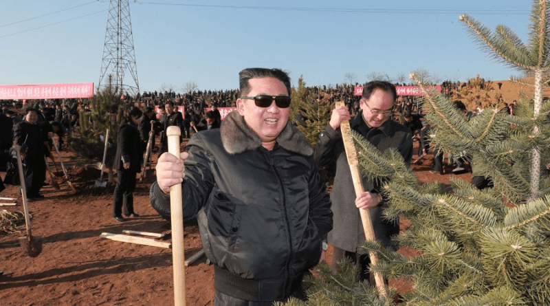 Kim Jong Un planta junto com participantes da Conferência em razão do Dia do Reflorestamento