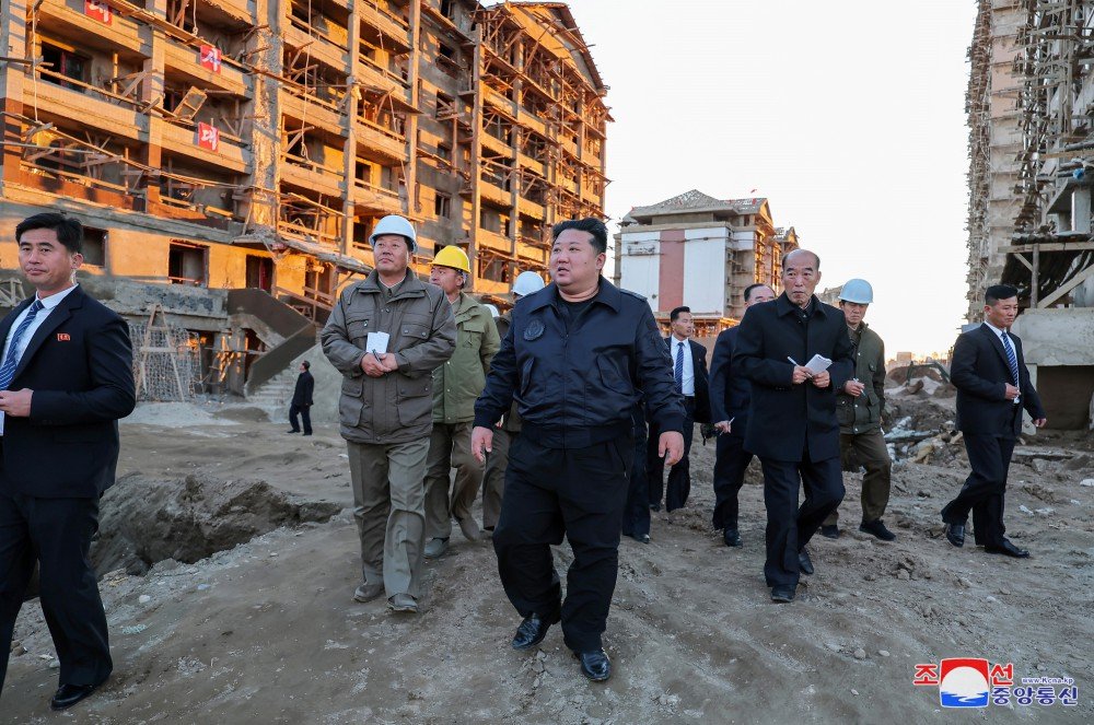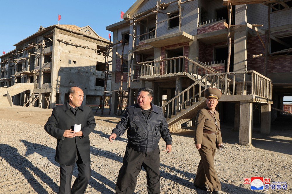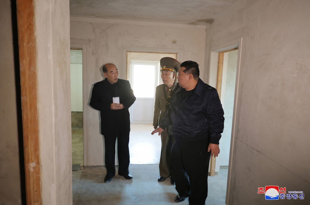Kim Jong Un percorreu a zona de recuperação de danos da comuna Ojok do condado de Uiju e da comuna Hadan da cidade de Sinuiju e averiguou detalhadamente o estado da obra.