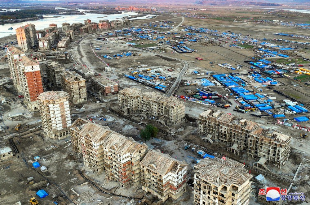 šš¢š¦ ššØš§š šš§ visita campo de reconstrução de Ć”reas afetadas por inundação em Phyong-an do Norte
