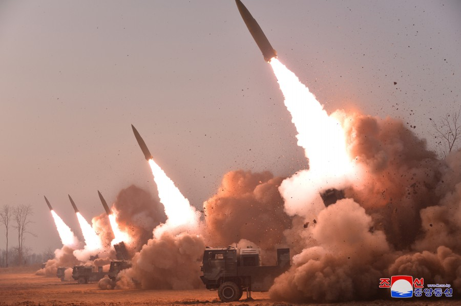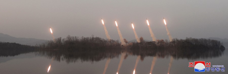 Pyongyang, 10 de março (ACNC) — O estimado camarada Kim Jong Un, Secretário-Geral do Partido do Trabalho da Coreia e Presidente dos Assuntos Estatais da República Popular Democrática da Coreia, dirigiu no dia 9 em campo unidade artilheira Hwasong do Exército Popular da Coreia que desempenha uma importante missão operacional da frente ocidental e assistiu a seu treinamento de assalto com fogo.