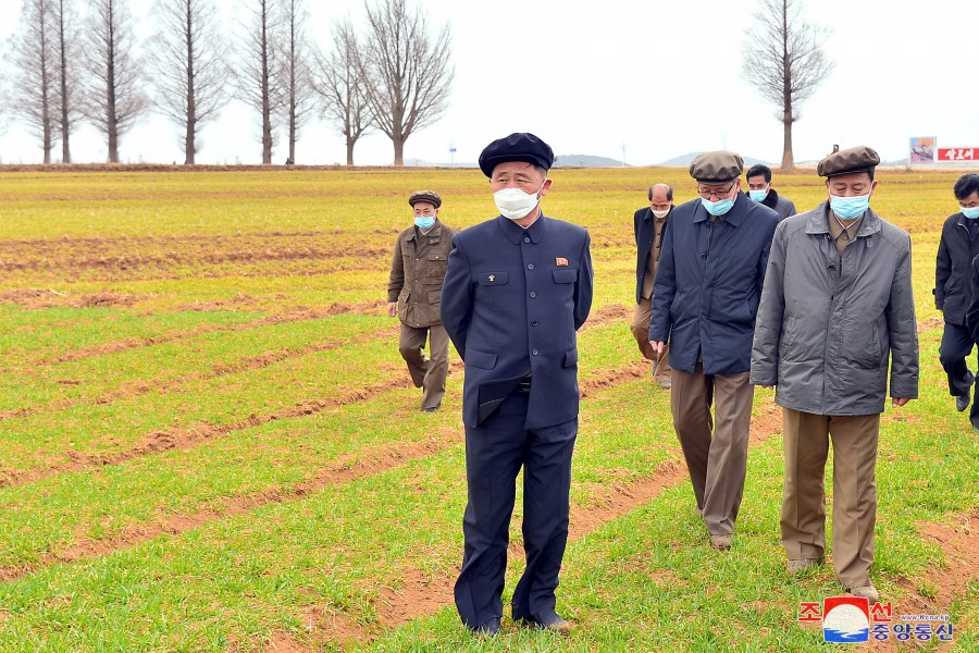 Percorrendo várias fazendas dos condados de Chongdan, Yonan e Paechon, encorajou os trabalhadores rurais que se dedicam com sinceridade às iminentes tarefas agrícolas em acato ao propósito do Partido que apresenta a província como porta-estandarte na produção agrícola do país, e com o desejo de concretizar a resolução da Ⅶ Sessão Plenária do Ⅷ Período do CC do PTC.