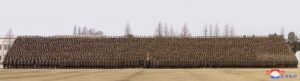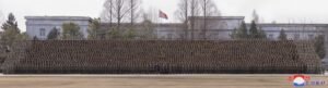 Todos os professores, funcionários e matriculados da escola de oficiais deram estrondosas vivas ao Comandante de aço que abre a era de máximo esplendor do fortalecimento do poderio militar nos anais da pátria ao dirigir sabiamente a causa da construção do exército poderoso de tipo juche.
