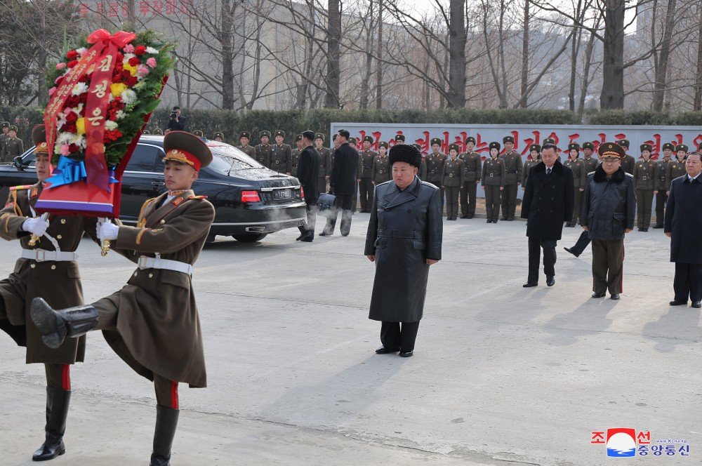 Como seu primeiro destino, o Secretário-Geral visitou o busto do combatente revolucionário anti-japonês Kang Kon, companheiro mais fiel ao Presidente Kim Il Sung e comandante militar competente, e depositou uma oferenda floral.