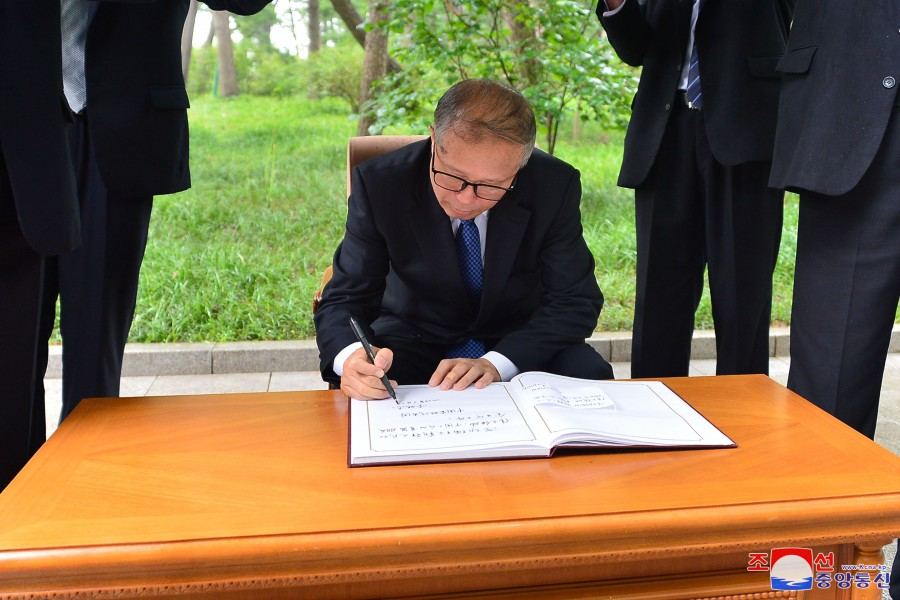 Acompanharam-no o subchefe de departamento do Comitê Central do Partido do Trabalho da Coreia, Mun Song Hyok, e o embaixador extraordinário e plenipotenciário chinês na Coreia, Wang Yajun.