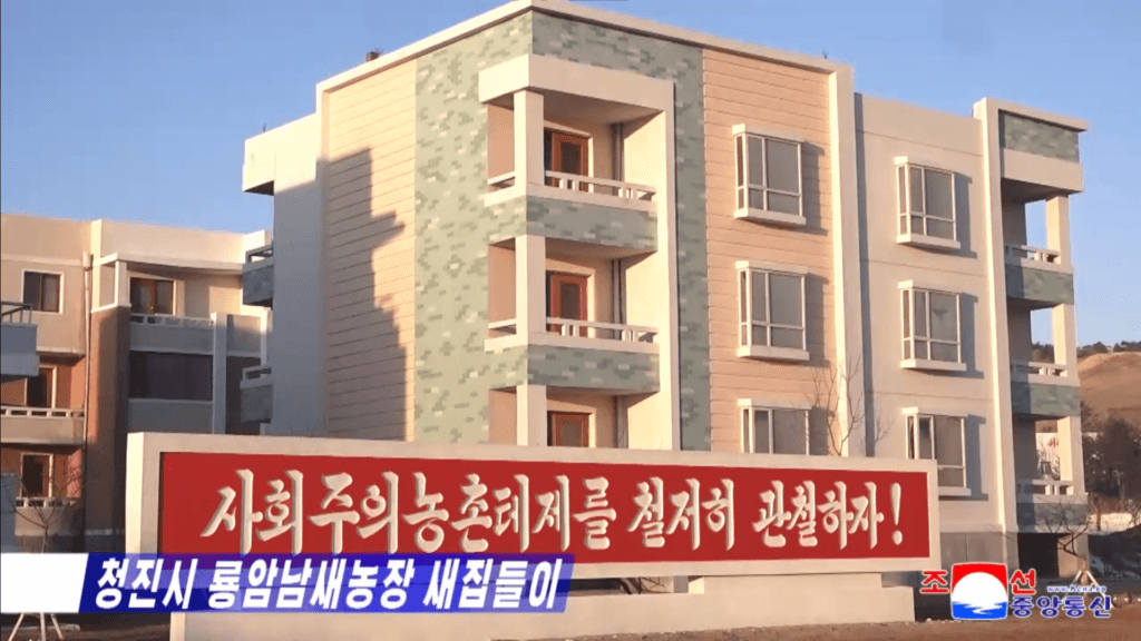 Essas habitações, que transmitem o ideal arquitetônico do PTC de dar primazia às massas populares e sua ideia de construção rural da nova era, são o nobre fruto dos esforços incansáveis do estimado camarada Kim Jong Un e sua benevolência.