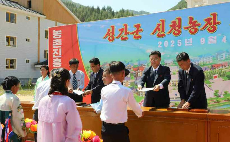 Sob a sábia liderança do Partido do Trabalho da Coreia, que dia após dia transforma a terra de maneira grandiosa, também no vilarejo de Sinchŏng, condado de Sŏnggan, se abriu um novo capítulo da vida socialista no campo, com a celebração da entrega de novas moradias.