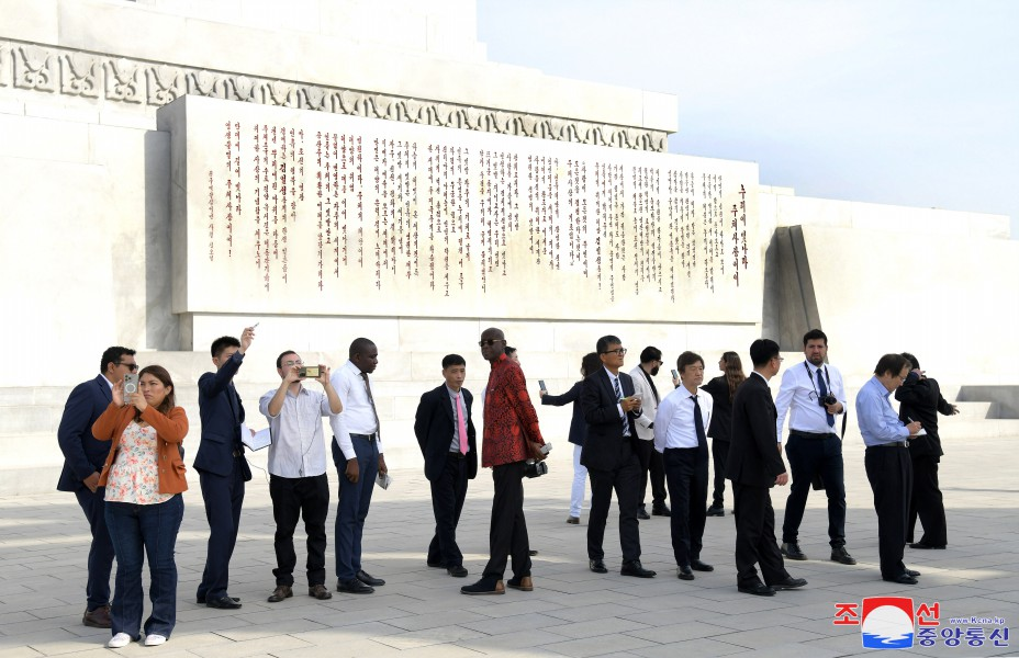Os hóspedes percorreram vários pontos ouvindo explicações sobre o monumento que transmite as indeléveis façanhas teórico-ideológicas do líder antecessor.
