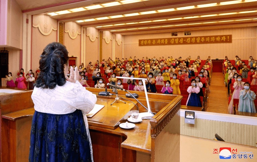 Exortaram todas as funcionárias e integrantes a exaltar o Presidente e o Dirigente como Sol do Juche e se prepararem como revolucionárias fervorosas que confiam e apoiam apenas o Secretário-Geral do Partido do Trabalho da Coreia.