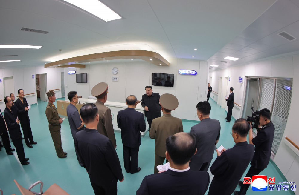 Kim Jong Un, secretário-geral do Partido do Trabalho da Coreia e presidente dos Assuntos de Estado da República Popular Democrática da Coreia, visitou em 23 de setembro o Hospital Geral de Pyongyang, que está prestes a ser inaugurado.