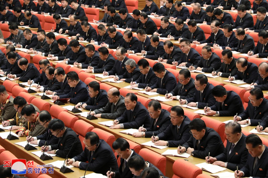 O Secretário-Geral do PTC, Kim Jong Un, apresentou o relatório.